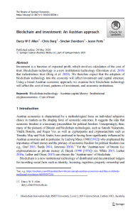 Abstract: Investment is a function of expected profit, which involves calculation of the cost of trust. Blockchain technology is a new institutional technology (Davidson et al 2018) that industrialises trust (Berg et al 2018). We therefore expect that the adoption of blockchain technology into the economy will affect investment and capital structure. Using a broad Austrian economic approach, we examine how blockchain technology will affect the cost of trust, patterns of investment, and economic institutions.