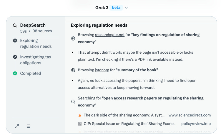 Research-enabled ‘deep research’ models are rapidly going down a cost curve. ChatGPT just released Deep Research to Plus subscribers, making remarkable research capabilities 8x more accessible than the previous $200-per-month tier. Other models like Gemini’s Deep Research, while not as good, are also at a friendly price point. Grok 3 deep search is free. These models will only improve, and costs will keep falling. This trend will accelerate.